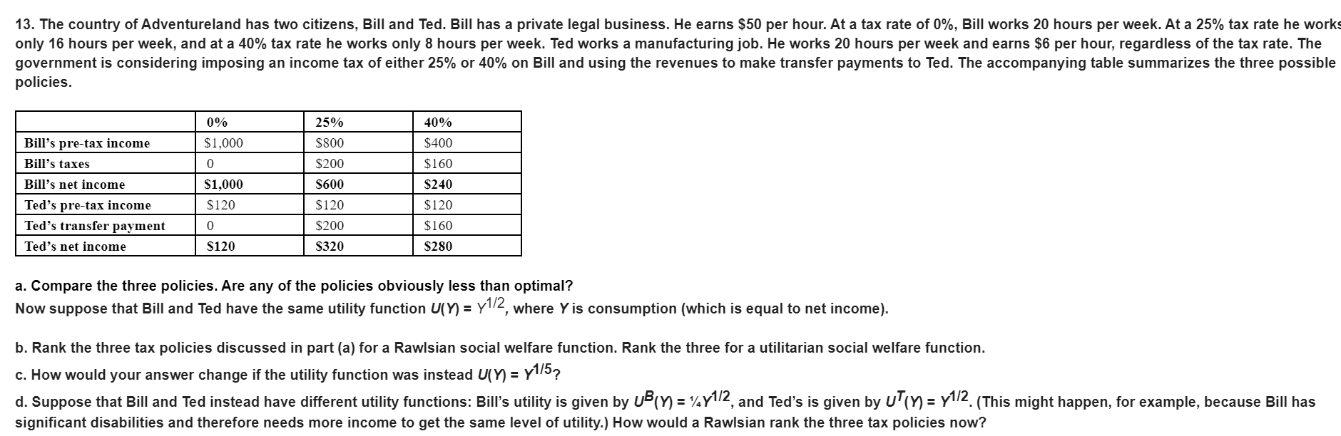 Solved 13 The Country Of Adventureland Has Two Citizens Chegg Com